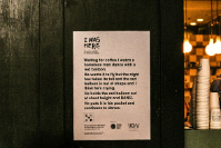 To map someone’s mind through the places that shape them is intimate; CHART Collective’s I Was Here project was a different kind of intimate, a mapping of the city by the memories that got stuck. It led us through a gallery of stories haunting Melbourne. The 44 printed posters told anonymous ‘micro-stories’, pasted up around the CBD in the place they were set: corners, alleys, cafes, shops and university campuses. I Was Here made public art of recalling individual experience, tempting collective memory.